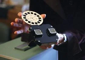 Stereoscope: This 1838 device paired side-by-side images that, when viewed through attached lenses, fused the pictures in a single, three-dimensional scene. The View-Master, a special-format stereoscope, was made popular in the 1960s as a children’s toy and is now sold as a virtual-reality headset.